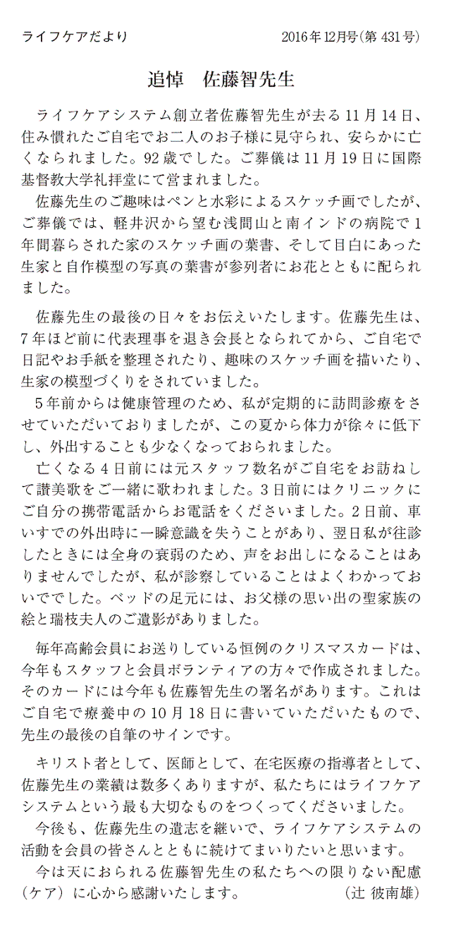 追悼 佐藤智先生